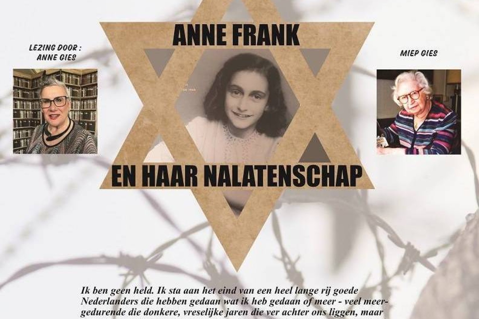LEZING: "ANNE FRANK EN HAAR NALATENSCHAP" DOOR ANNE GIES.