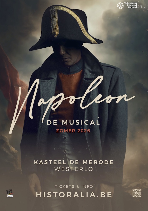 In de zomer van 2026 vormt het Kasteel de Merode in Westerlo het indrukwekkende decor voor Napoleon, een meeslepende musical over de opkomst en ondergang van één van de meest invloedrijke leiders uit de wereldgeschiedenis. Het kasteel, met zijn statige geschiedenis en vorstelijke uitstraling, biedt de perfecte setting voor deze grootse productie.